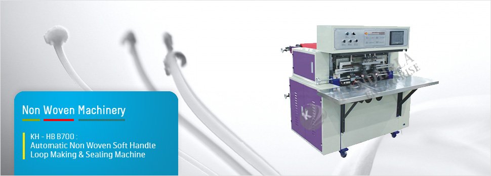 This KH-HB B700 Machine is new-type and high-quality Full Automatic Single Side Handle Loop Making and Sealing Machine . In this machine uses unique structure, abandoning and the rotating cylinder, Control Center for the Panasonic PLC, Touch Screen Operation and feeding Stepper motors.